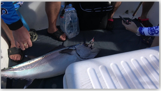 本次海釣,最精彩的華章為捕獲5尾大型犬齒鮪魚,單尾重量分別為65kg、53kg、48kg、36kg和32kg。另有數量可觀的黃鰭金槍魚、東星斑等。中源歐佳海釣系列產品,折服眾人;中源歐佳“海狂”團隊,在美麗的塞班島,留下了濃墨重彩的一筆。