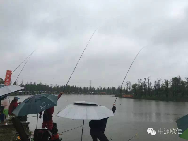 上午9:00準時開賽,176名釣友在風雨中揮竿垂綸,開始了一天兩場各兩個小時的比拼。雖然天氣驟變,風大雨疾,影響了釣手上魚成績,但四個小時的賽程,無人退縮,風雨中堅持到底。釣友張建萬兩場分別釣獲9.3千克、9.52千克,各得1分,最終捧走了本次比賽的冠軍獎杯。江天天、周林林獲得亞軍和季軍。