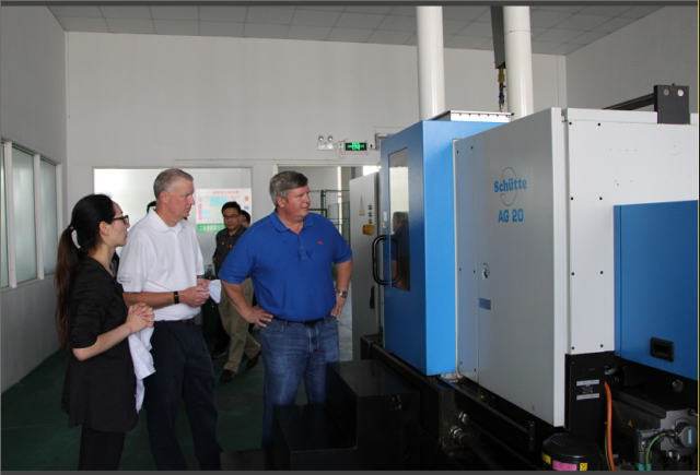 5月3日, ZEBCO公司首席執行官JEFF PONTIUS和副總裁JEFF MOORE一行4人蒞臨公司參觀指導。總經理嚴軍威、常務副總經理嚴杰陪同參觀了工程技術中心、研發中心、生產中心及樣品中心,并熱情洋溢地討論了現有合作以及未來兩年新項目發展計劃。